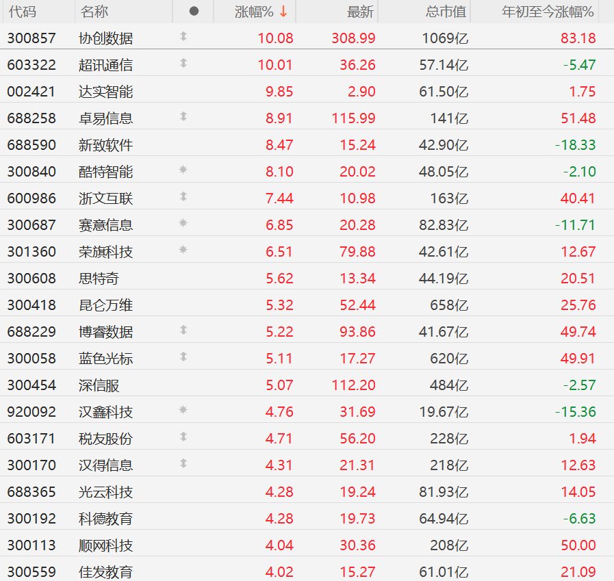 汇配资平台 A股AI应用股全线上涨,昆仑万维、蓝色光标涨超5%